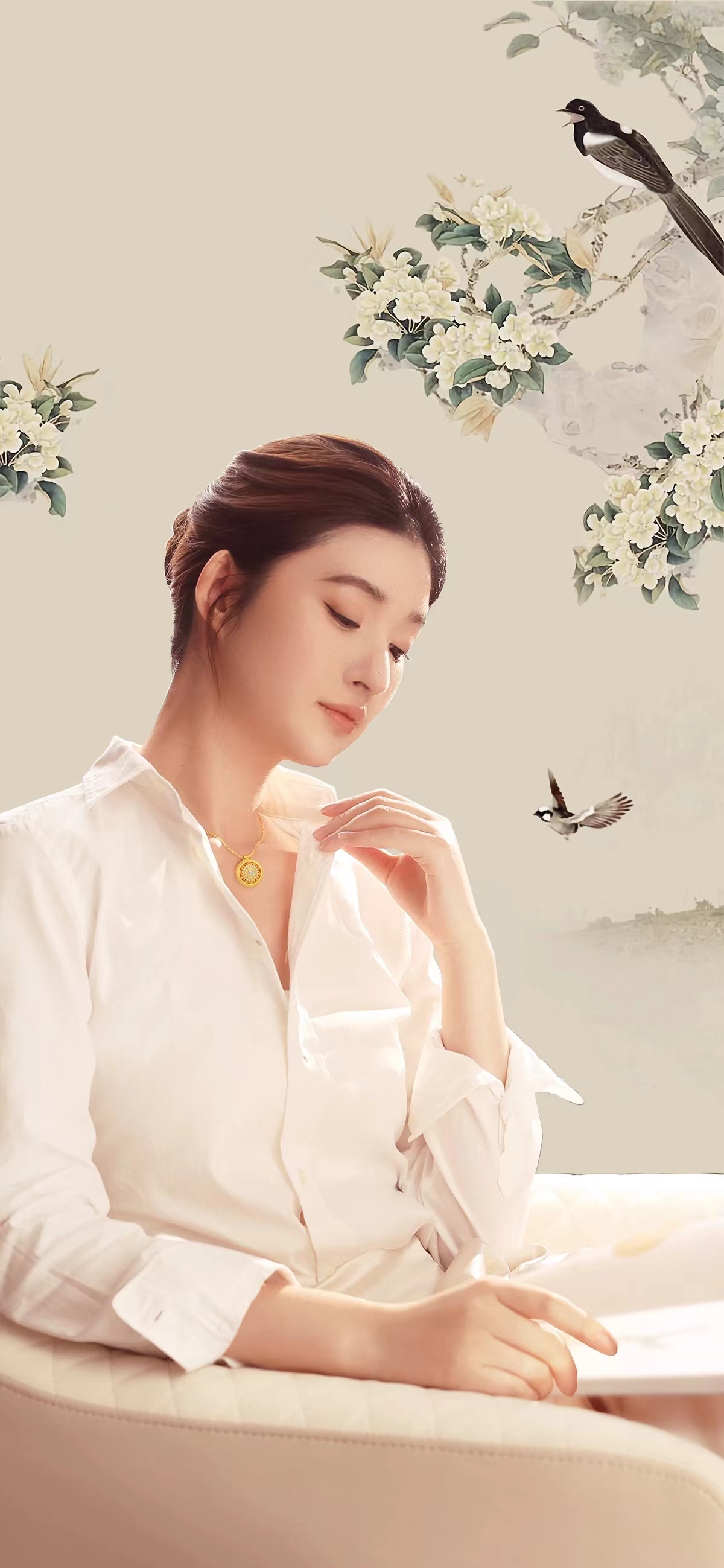 一幅素雅國風畫卷躍然頸項